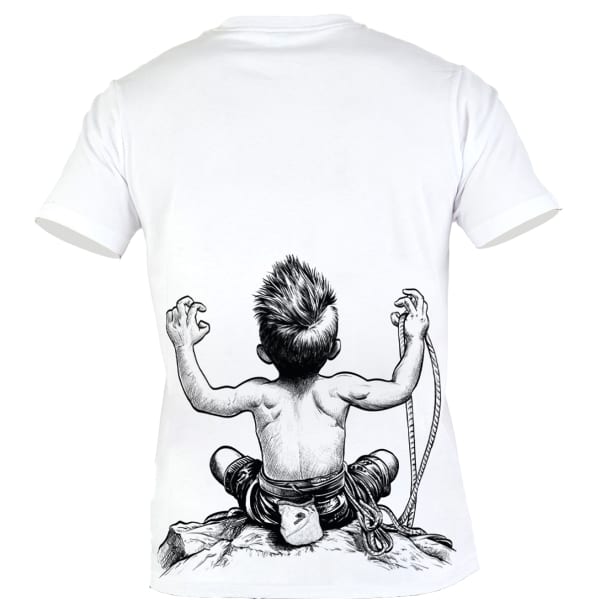 Confeccionado en algodón orgánico, este modelo combina confort, transpirabilidad y compromiso con el medio ambiente. Su diseño exclusivo presenta una emblemática serigrafía en la espalda, que representa a un joven escalador decidido, y discretas letras "Born to climb" en la parte delantera. Con su corte ceñido y su acabado impecable, ofrece una gran libertad de movimientos, ideal para escalar y para las actividades cotidianas.