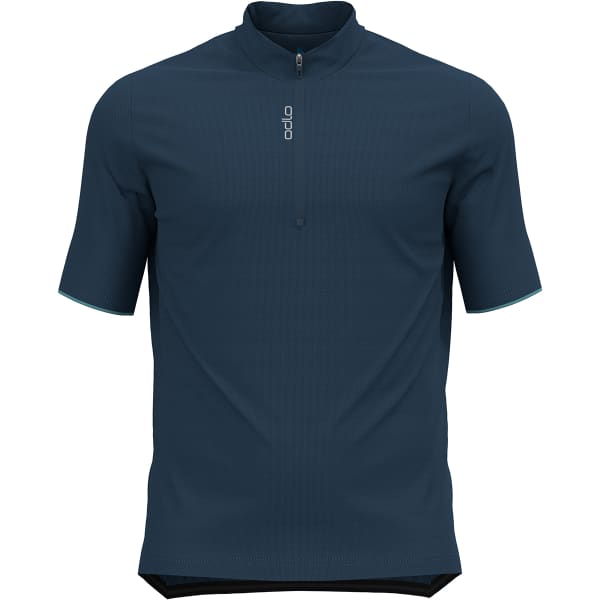 La Odlo ESSENTIAL STAND-UP COLLAR S/S 1/2 ZIP es una camiseta técnica para hombre diseñada específicamente para el ciclismo.
